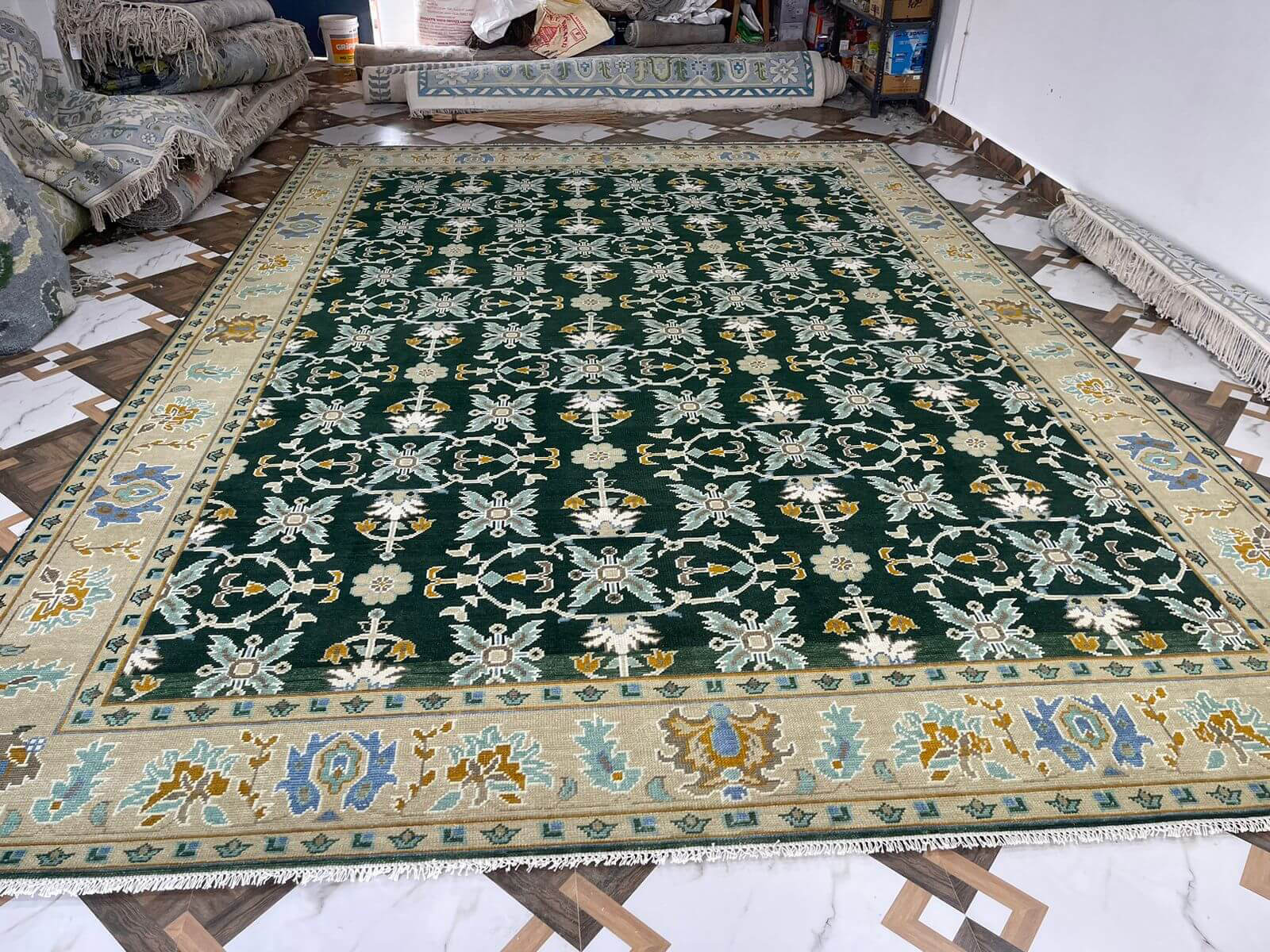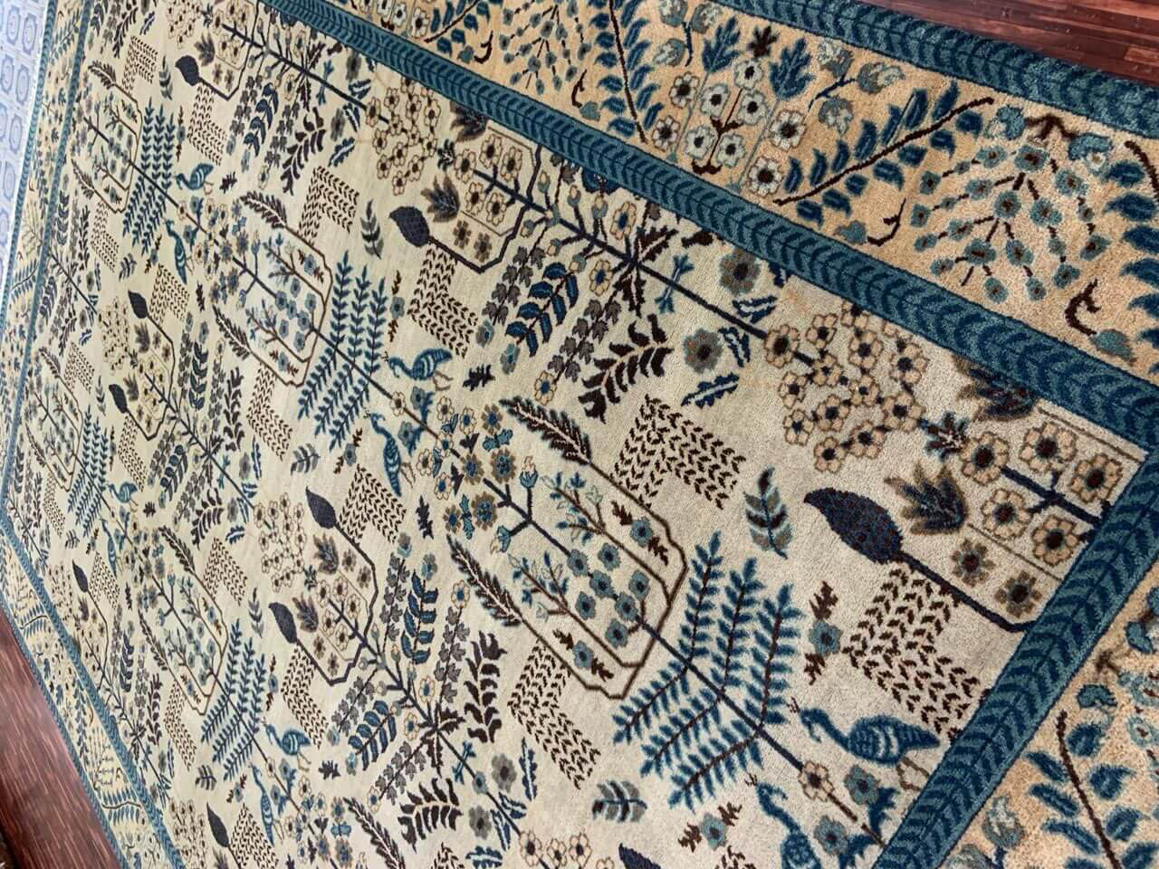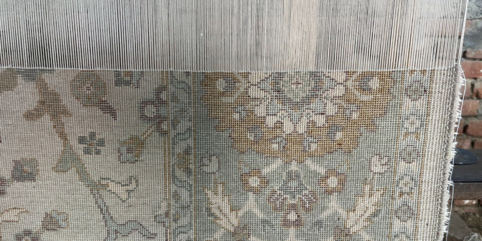 Hand Woven Grey Blue Wool Rug Flat Weave Construction